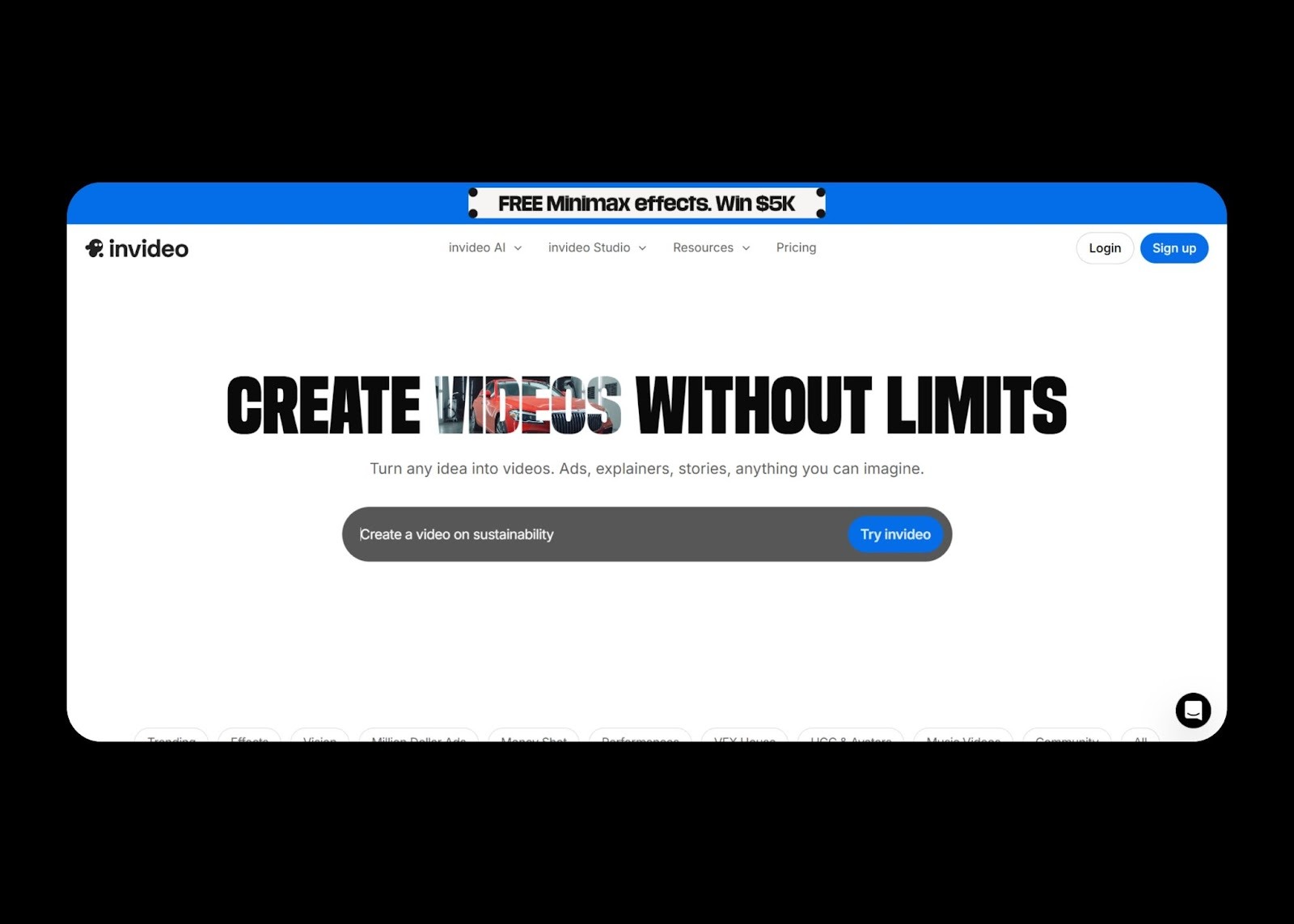 InVideo enables video creation from text prompts with AI-generated scripts and visuals.