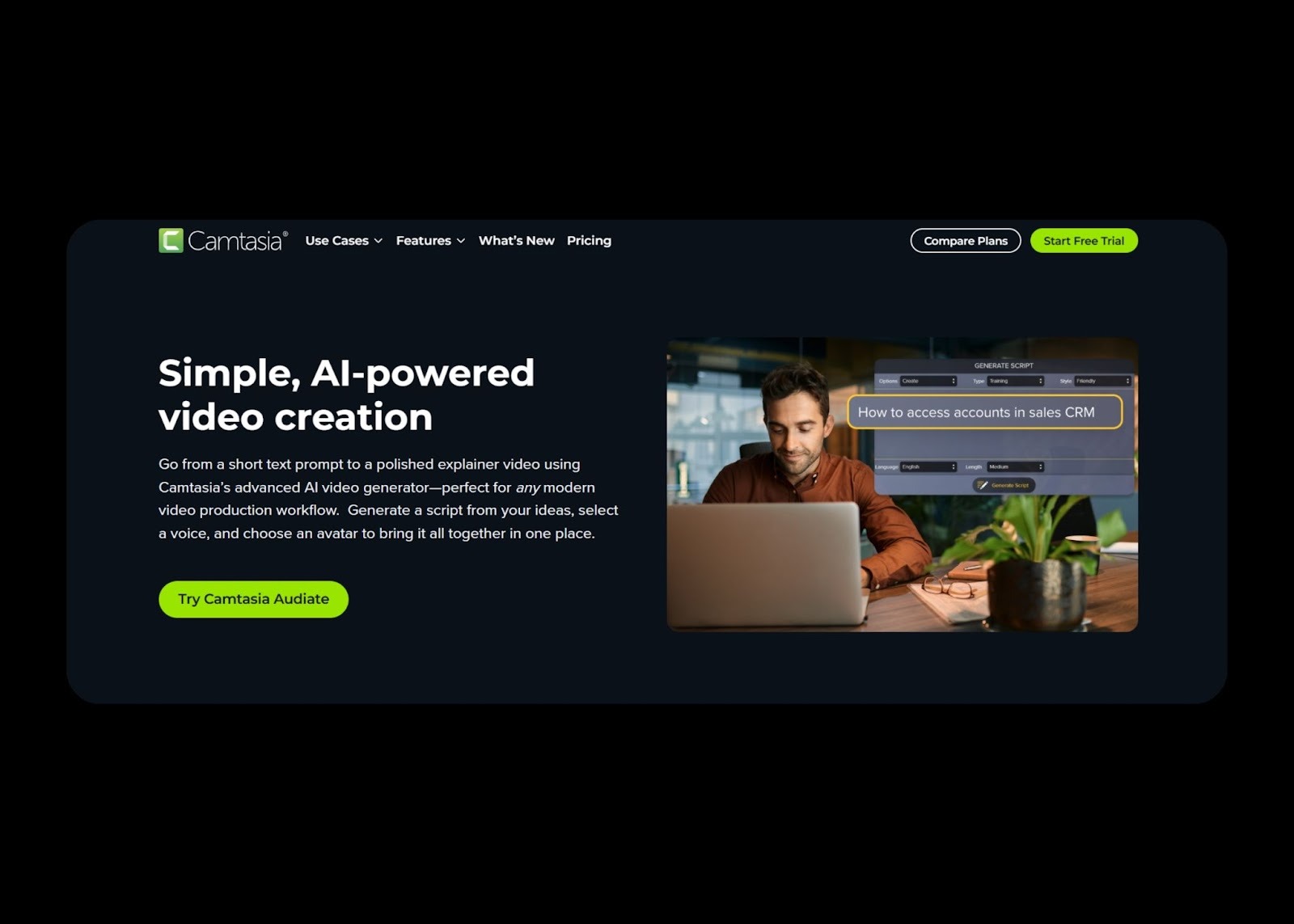 Strengths: Intuitive text-based editing, screen recording integration