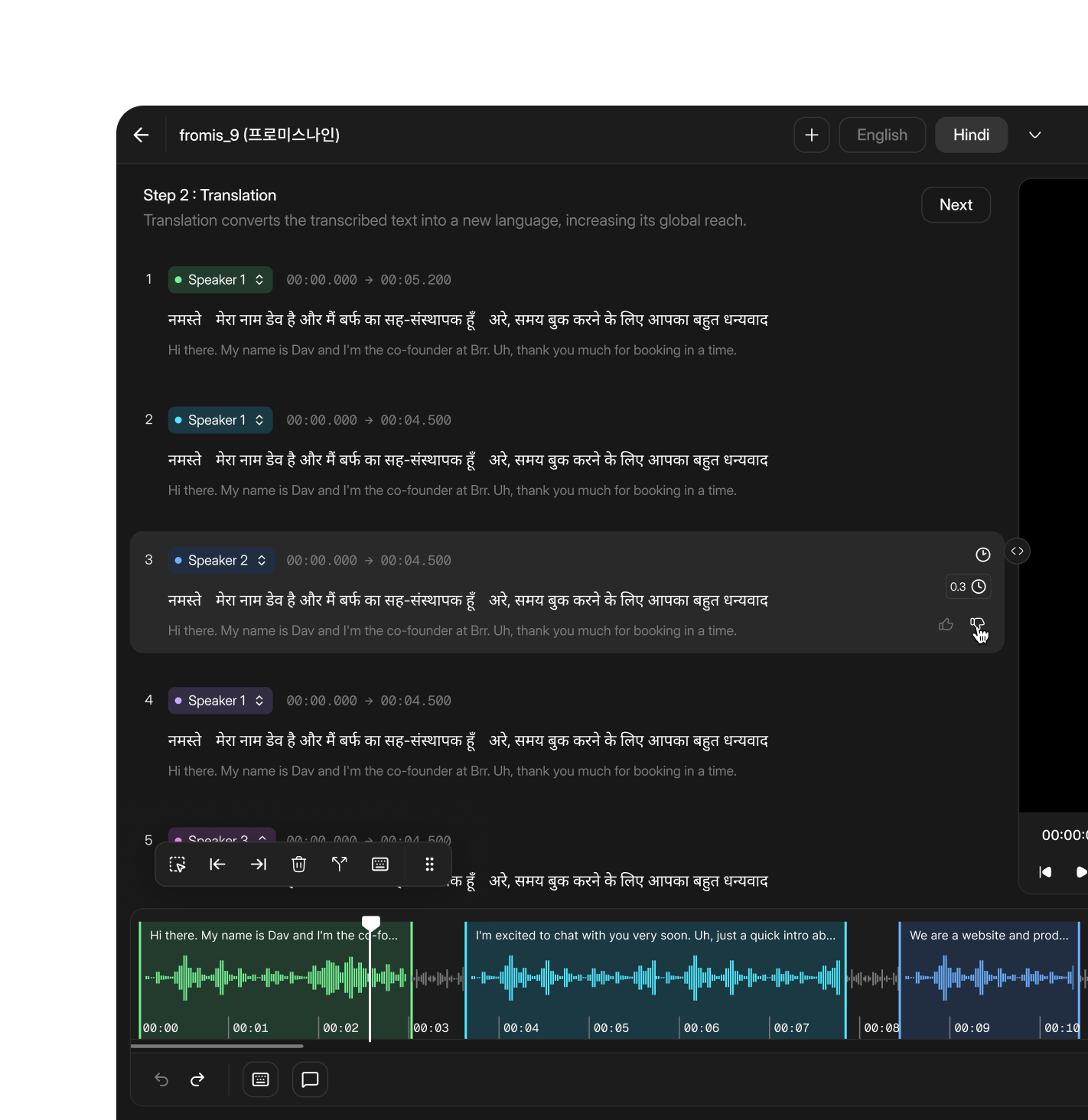 CAMB.AI génère des sous-titres et des sous-titres précis et chronométrés dans plus de 150 langues directement dans DubStudio, avec une diarisation des haut-parleurs, un style personnalisé et une exportation dans tous les principaux formats.